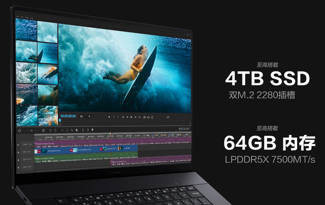 存储方面,ProArt 创16 2025最高搭载64GB LPDDR5X 7500MT/s大容量高频内存与4TB SSD组合,64GB的大内存优势优化下,该机还内置有双M.2 SSD插槽,方便用户自行扩展。