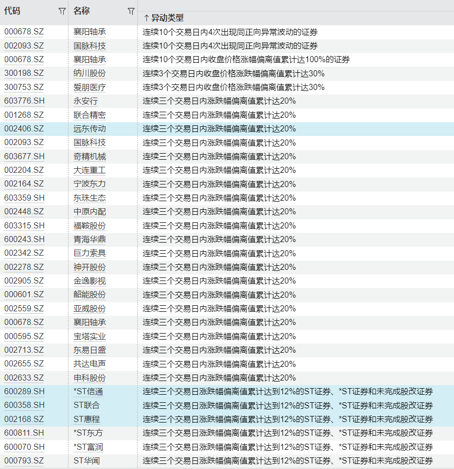 连续异动个股一览连续异动个股一览