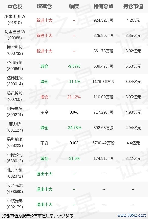 本站消息,4月21日广发基金旗下刘格菘管理的广发行业严选三年持有期混合型基金公布一季报博盈证券,近1年净值增长率6.13%。与上一季度相比,该基金前十大重仓股新增小米集团-W,阿里巴巴-W,振华科技;其中圣邦股份持仓占比8.75%,为该基金第一大重仓股;北方华创,天合光能,中航光电等退出前十大重仓股;详细数据如下: