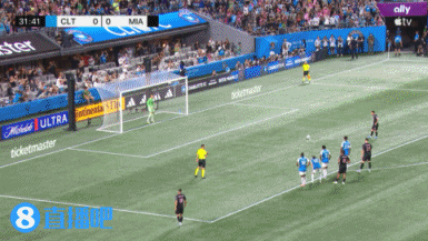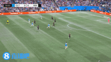 伤停补时2分钟。上半场比赛结束,迈阿密国际0-1夏洛特FC。