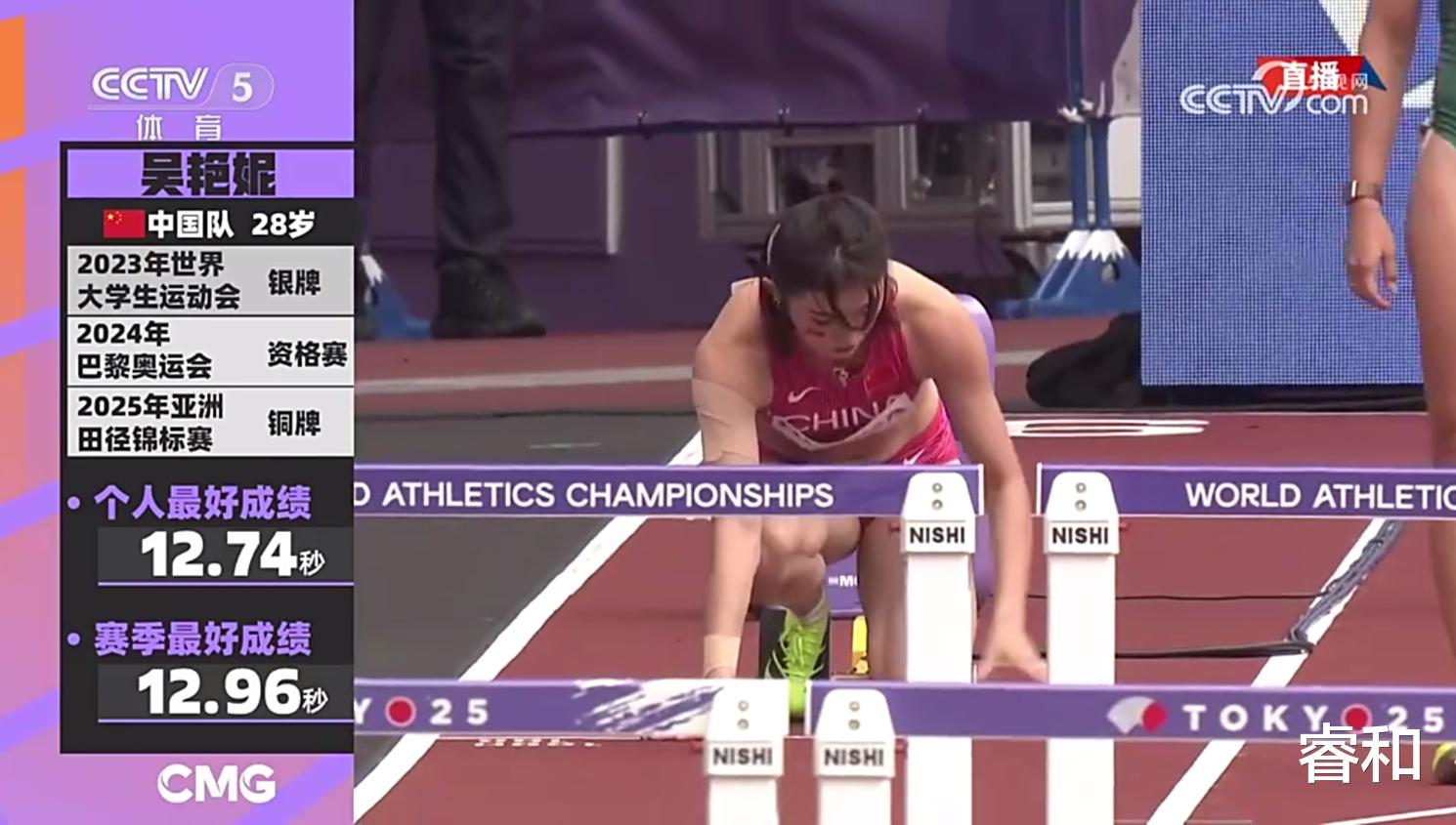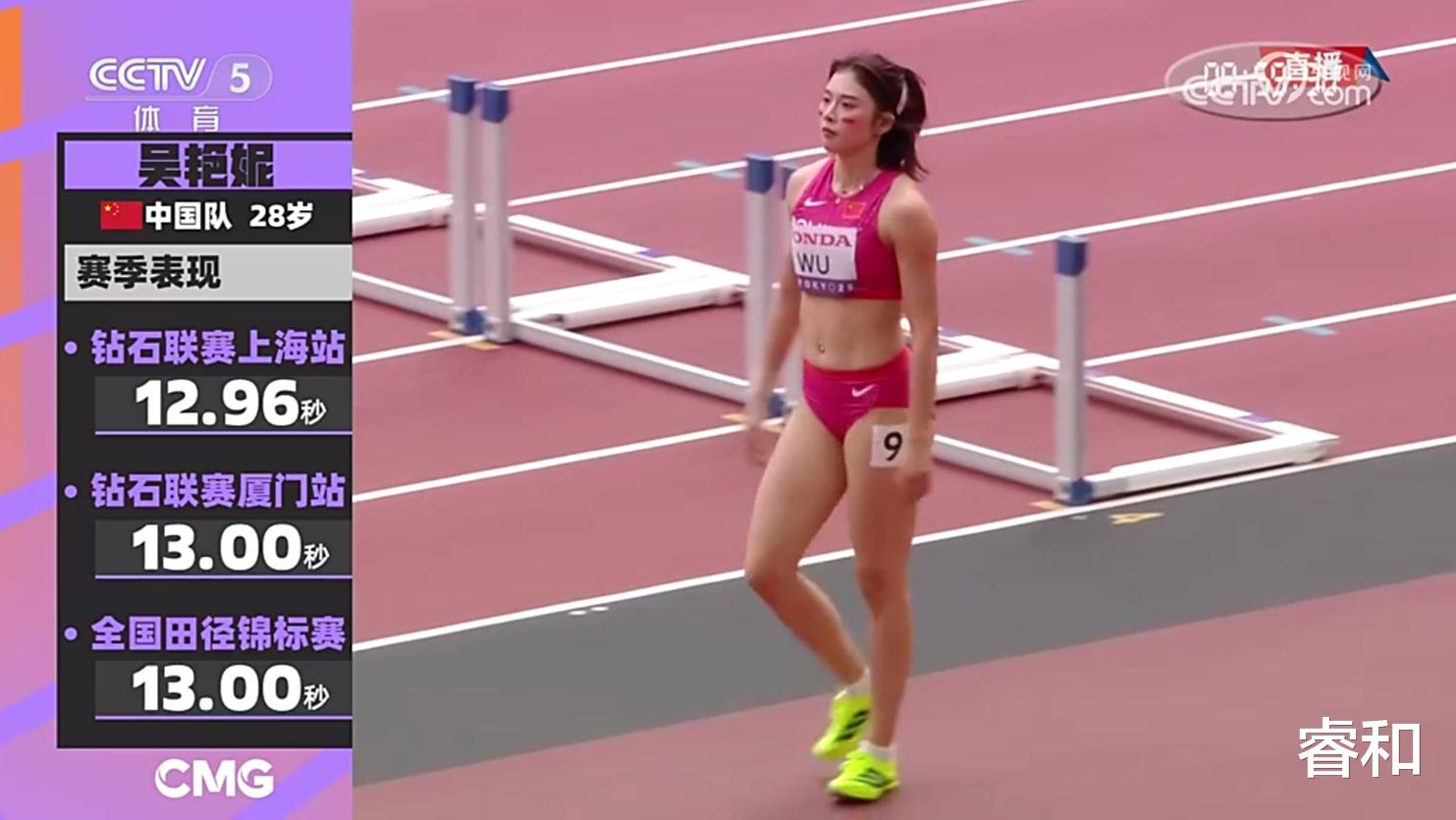 比赛中,吴艳妮被分在第九道出发。从比赛画面可以看出,她的起跑反应明显慢于同组其他选手。